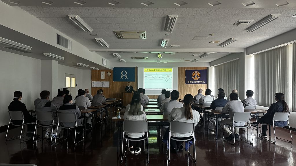 照屋様は安全運転管理者講習でもご登壇されており、弊社の安全運転管理者が「ぜひ講師としてお招きしたい」と熱望し、拓南本社株式会社 業務部保険課長協力のもと実現いたしました。