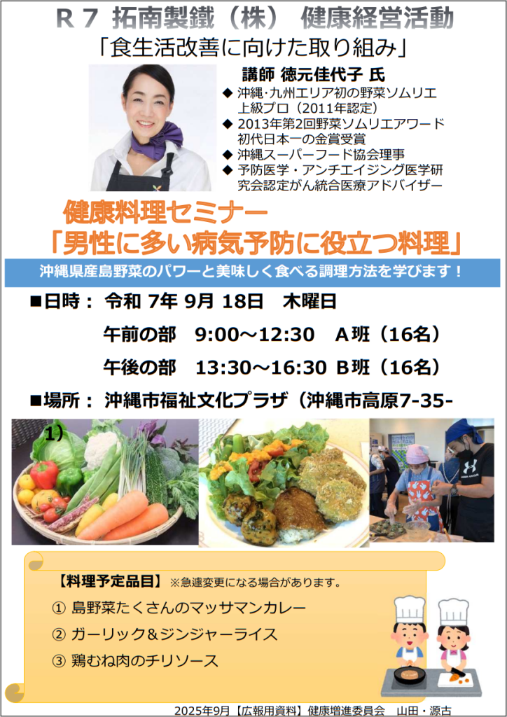 拓南製鐵では健康増進委員会のメンバーが中心となり、社員の健康増進活動を進めております。