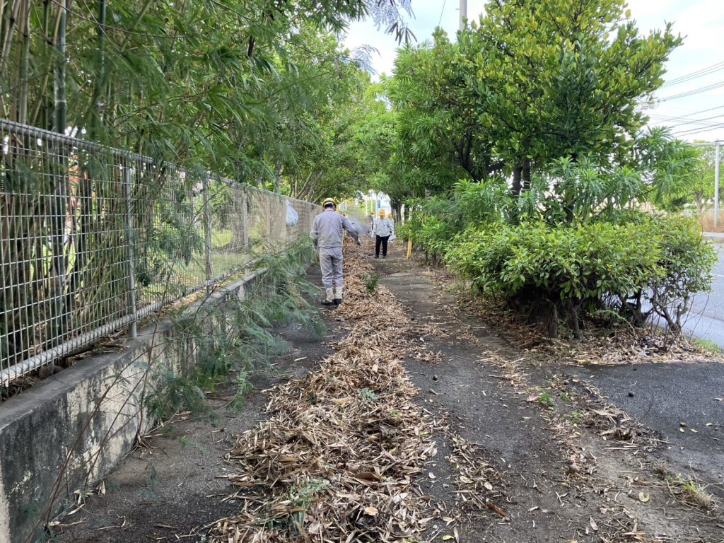 拓南製鐵では健康増進委員会のメンバーが中心となり、社員の健康増進活動を進めております。 その一環とし、ひと月に一度、会社の敷地周辺の清掃活動を行っています。 今回はその第四回目となります。